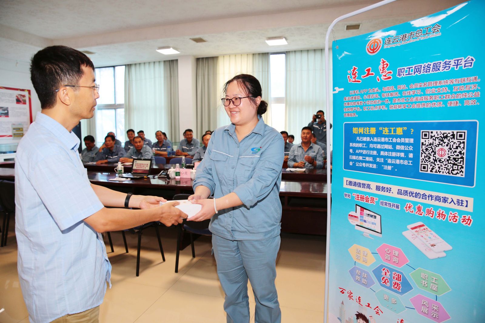 此次調(diào)研,孫月春副主席一行帶來(lái)三百余冊(cè)圖書贈(zèng)予公司職工書屋,進(jìn)一步豐富了公司職工的業(yè)余文化生活,并向參加連工惠抽獎(jiǎng)活動(dòng)獲獎(jiǎng)的我公司職工伏廣偉頒獎(jiǎng)。連工惠運(yùn)營(yíng)人員針對(duì)“連工惠”平臺(tái)注冊(cè)相關(guān)事宜進(jìn)行了面對(duì)面指導(dǎo),并一一解答了現(xiàn)場(chǎng)參會(huì)人員提出的問(wèn)題。