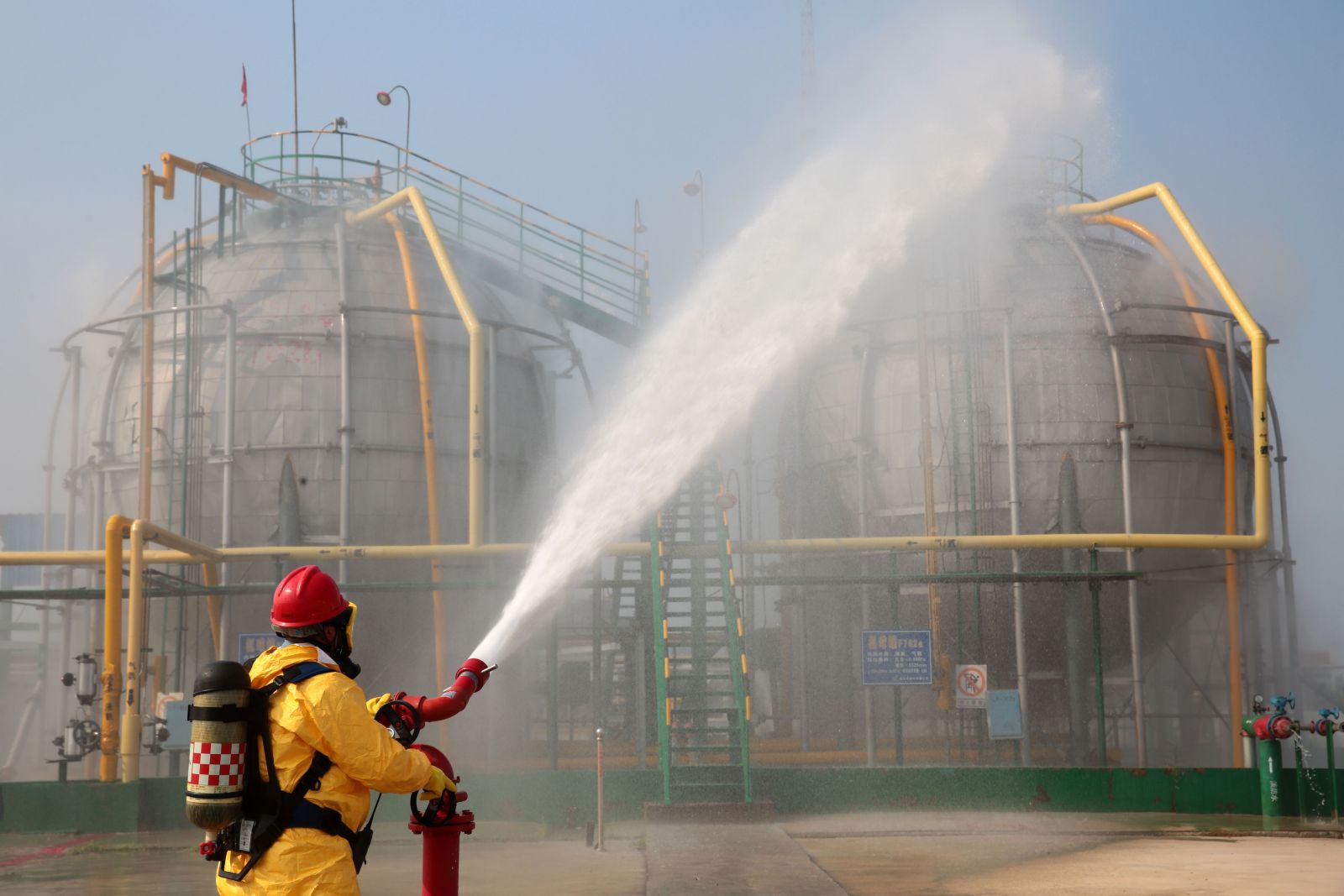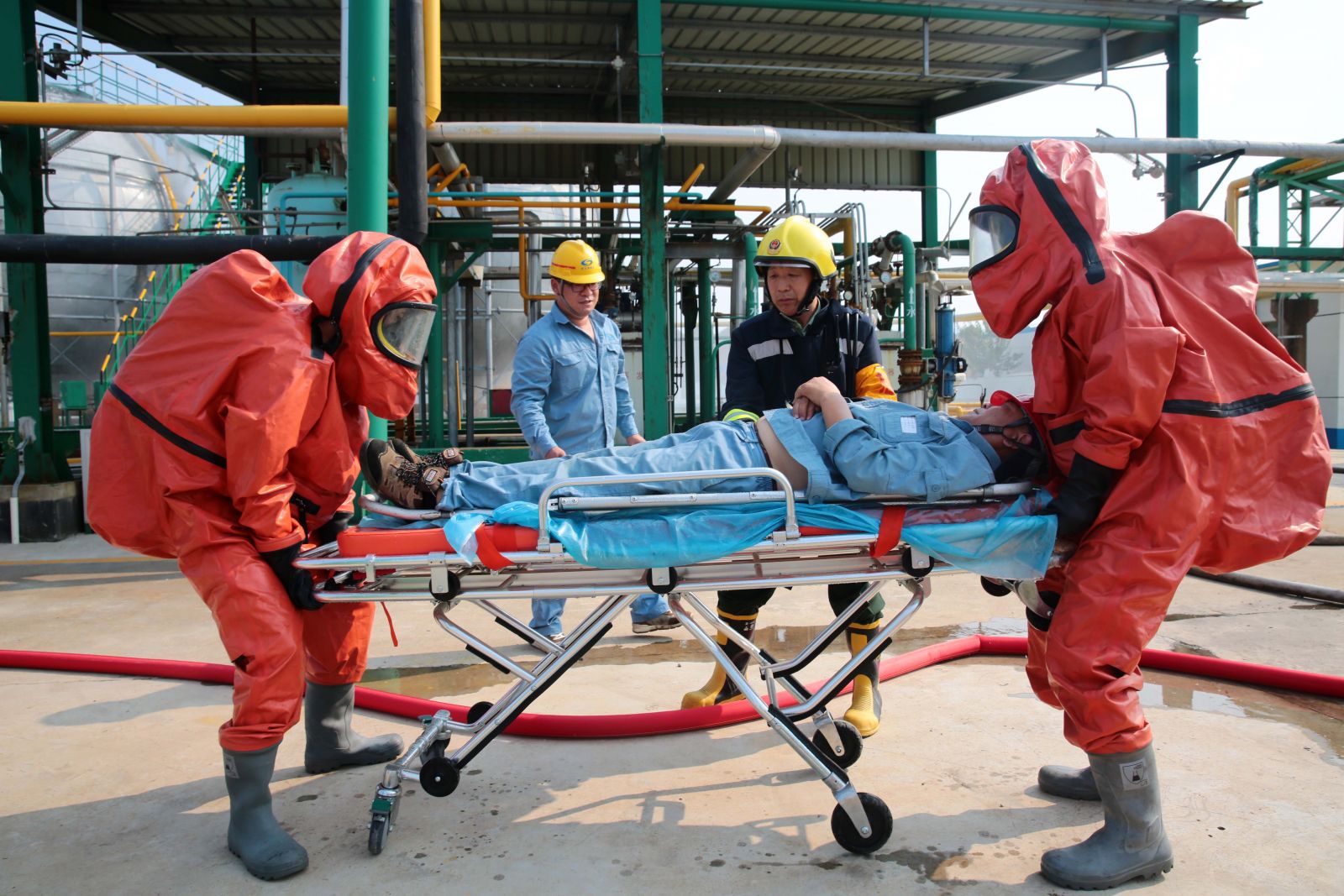 為檢驗(yàn)公司應(yīng)急救援時(shí)各環(huán)節(jié)的協(xié)調(diào)能力和應(yīng)急救援預(yù)案的可操作性,提高應(yīng)急人員在緊急情況下妥善處置突發(fā)事件的實(shí)戰(zhàn)能力,9月5日,公司以“液氨庫B球罐底部發(fā)生泄漏,現(xiàn)場(chǎng)當(dāng)班工人中毒”為假想事故,在液氨庫舉行秋季危險(xiǎn)化學(xué)品生產(chǎn)安全事故應(yīng)急救援演練。