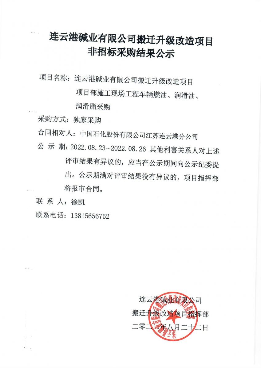 搬遷升級改造項目施工現(xiàn)場工程車輛燃油、潤滑油、潤滑脂采購結果公示