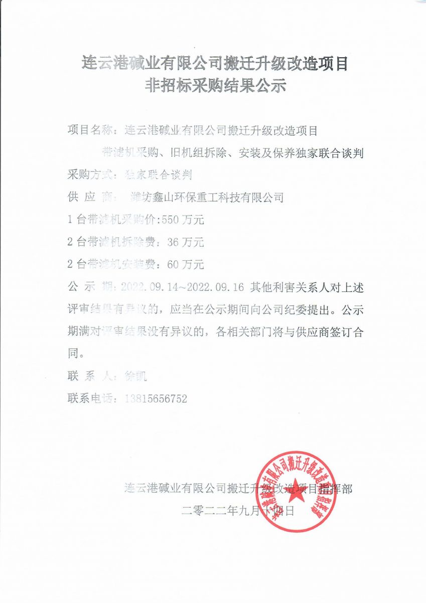 搬遷升級改造項(xiàng)目非招標(biāo)采購結(jié)果公示