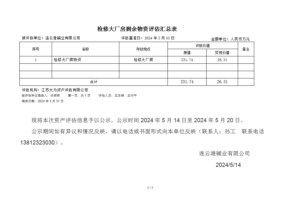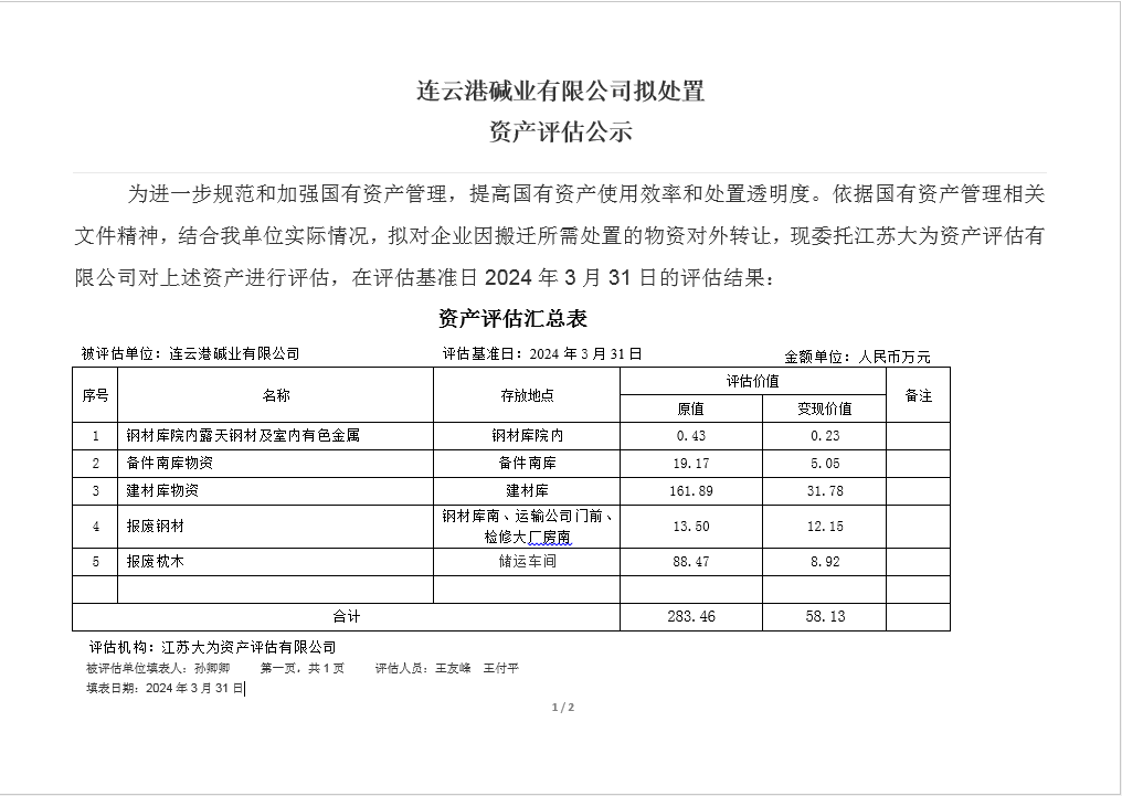 檢修廠房及鋼材庫(kù)物資資產(chǎn)評(píng)估公示